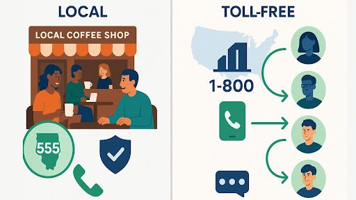 What’s the difference between local and toll-free numbers for building trust? Local numbers build community trust by demonstrating local presence and familiarity, while toll-free numbers convey national credibility and remove cost barriers for customers.