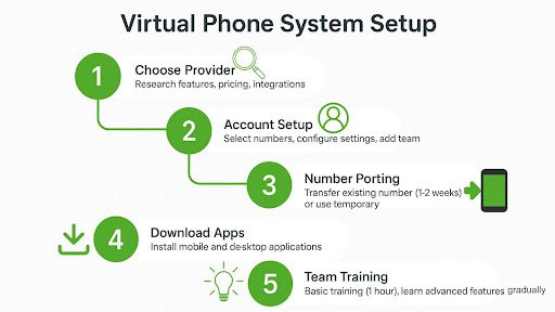 Getting started with a virtual phone system is refreshingly straightforward compared to traditional phone installations, typically requiring just a few simple steps that you can complete yourself.